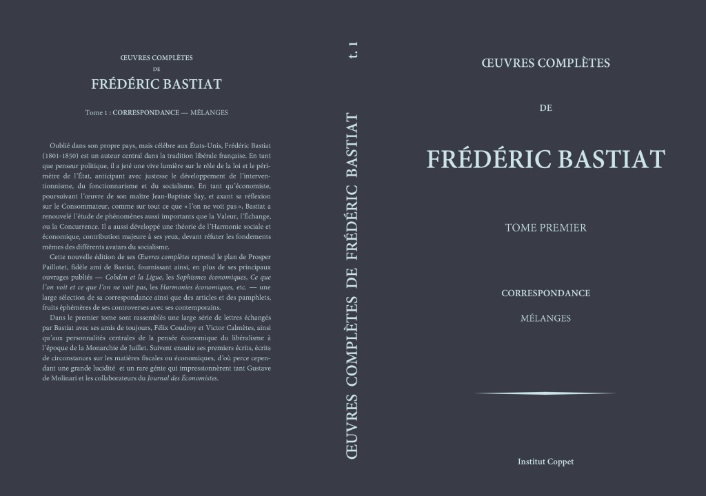 Les éditions de l’Institut Coppet font paraître ce 1er décembre 2015 une nouvelle édition des Œuvres complètes de Frédéric Bastiat, en un lot de 7 volumes au prix imbattable de 99€.