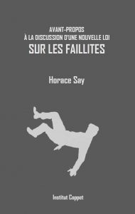 Dans cette brochure parue en 1837 — l’une des premières publications économiques de l’éditeur Guillaumin — Horace Say expose sa critique de la législation de l’époque sur les faillites d’entreprises. Il lui reproche surtout d’être trop éloignée des faits, c’est-à-dire de la réalité.