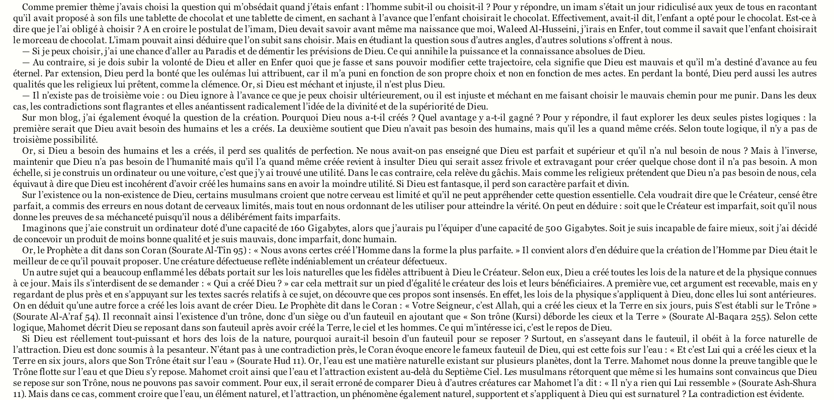 Extrait de “Blasphémateur ! les Prisons d’Allah”, par Waleed Al-Husseini