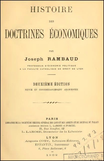 Histoire des doctrines économiques par Joseph Rambaud, 2e édition, 1902 (Professeur d’économie politique à la faculté catholique de droit de Lyon).