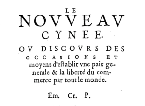 [4] Le nouveau Cynée, ou Discours des occasions et moyens d’établir une paix générale et la liberté du commerce par tout le monde, 1623, préface, p. vi.