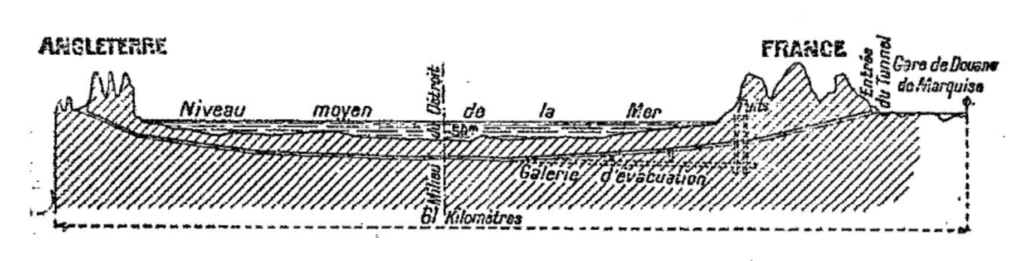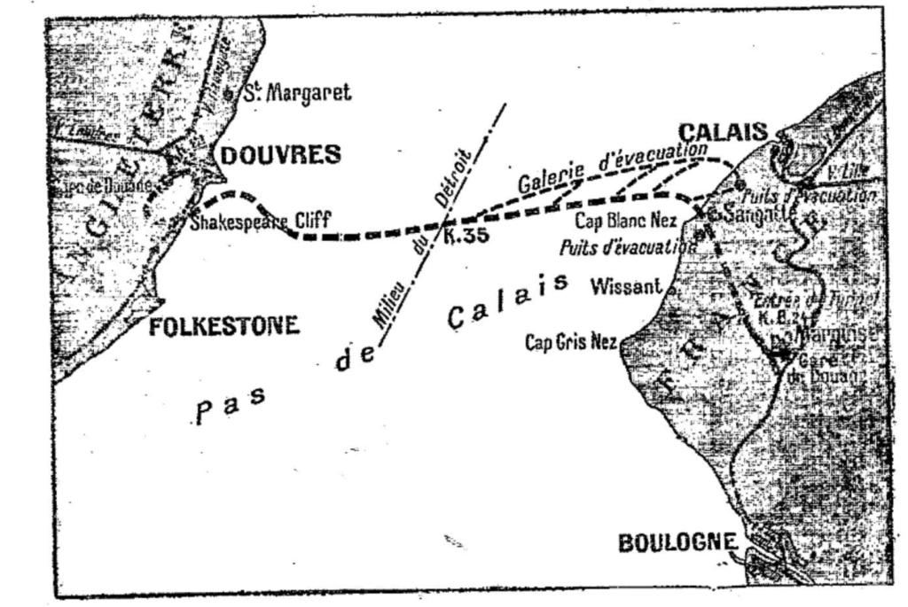 Cette interdiction donna naissance à d’autres projets : le pont sur la Manche et les Ferry-boats, énormes bacs construits pour embarquer un train dans toute sa longueur. Ce second projet ne supprime ni les malaises du mal de mer, ni les dangers des collisions dans ce détroit si resserré, ni les incertitudes dues aux tempêtes et aux épaisses brumes. En cas de guerre, quelques torpilles dormantes suffisent pour arrêter la navigation au moment où le plus grand besoin s’en fait sentir, tandis que le tunnel par sa profondeur reste indemne.