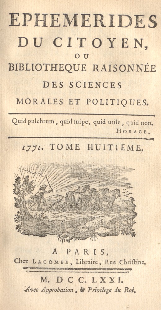 Ainsi qu’il a été rappelé dans un article antérieur de la revue, c’est aux Physiocrates que nous devons les premiers journaux d’économie politique. Il y eut d’abord la Gazette du Commerce, puis son pendant théorique, le Journal de l’Agriculture, du Commerce et des Finances. Après la conversion de Nicolas Baudeau, parurent enfin les Éphémérides du citoyen. Ces publications firent beaucoup pour le succès des économistes français et pour la diffusion de leurs idées dans l’esprit des gens de l’époque. Leurs quelques défauts, aisément perceptibles, nous invitent pourtant à nous questionner sur la meilleure manière de parler d’économie au plus grand public — une réflexion essentielle, il est aisé de le comprendre.