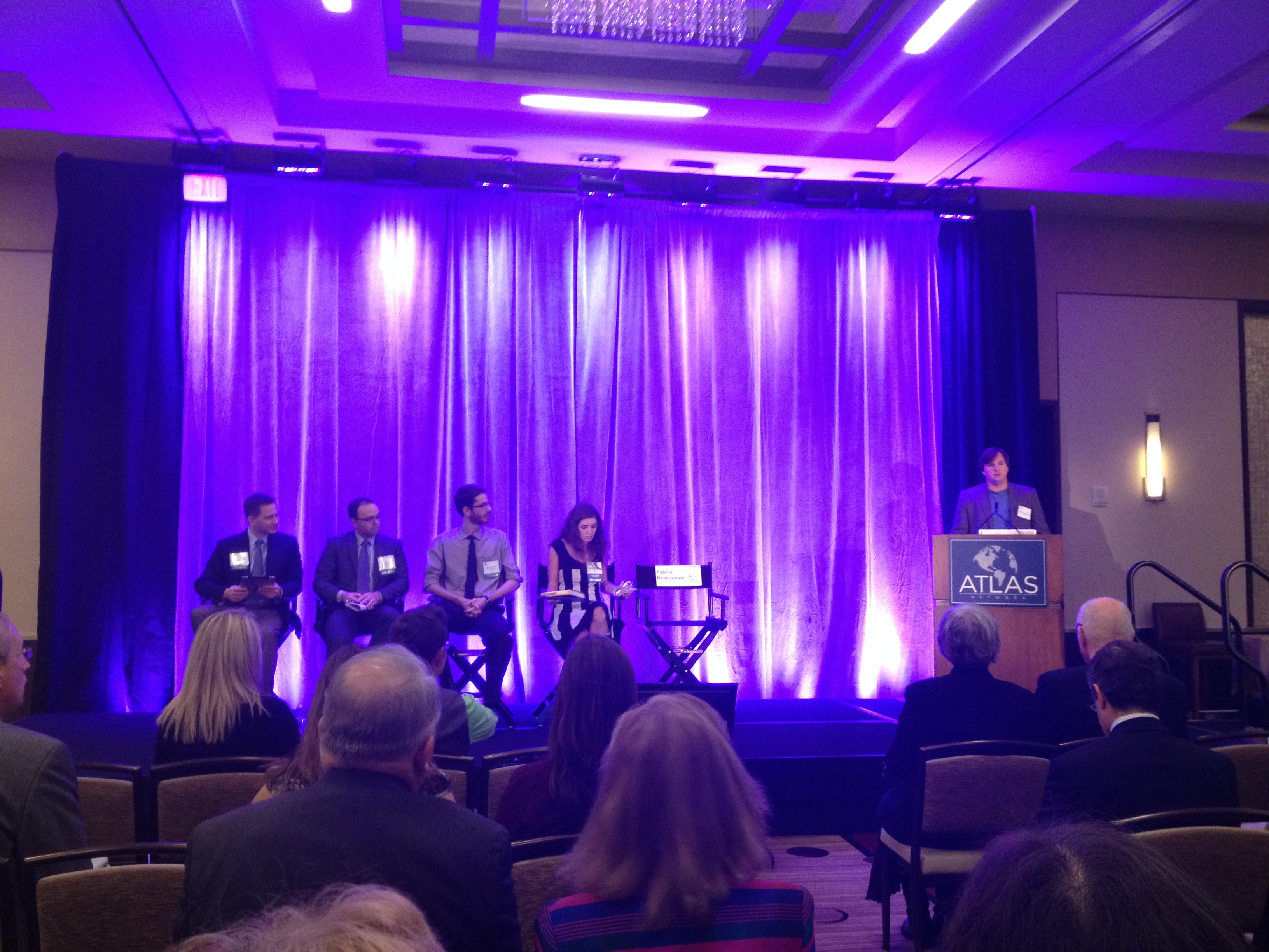 - Des compétitions, comme par exemple le Think Tank Shark Tank, un concours où quatre candidats présentaient un projet de leur think tank avec une récompense de 25 000$ à la clef ; la compétition Elevator Pitch entre les participants au programme de formation MBA d’Atlas qui s’affrontaient en 60 secondes pour défendre le travail de leur organisation devant l’assistance ;