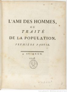 - L’Ami des Hommes. Traité de la population, par le marquis de Mirabeau (1757)