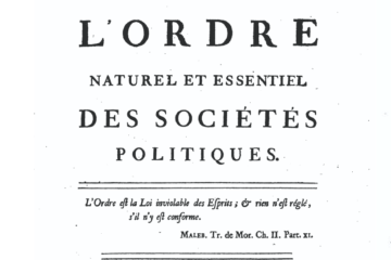 Publié en 1767, l’Ordre naturel et essentiel des sociétés politiques connut un succès retentissant, et aujourd’hui il peut être tenu pour l’un des ouvrages les plus importants du mouvement physiocratique. L’ultra-monarchisme de ces auteurs, et la doctrine économique auxquels ils ont été associés, sur la productivité respective de l’agriculture et de l’industrie, y sont bien expliqués. Mais fondamentalement, dit Lemercier de la Rivière, l’ordre naturel et essentiel des sociétés politiques se fonde sur la liberté et sur la propriété : et ce programme-là, de liberté du travail, de libre-échange intégral, de laissez-faire, de paix, peut bien mieux résonner. Il fait aussi le mérite de ce livre.