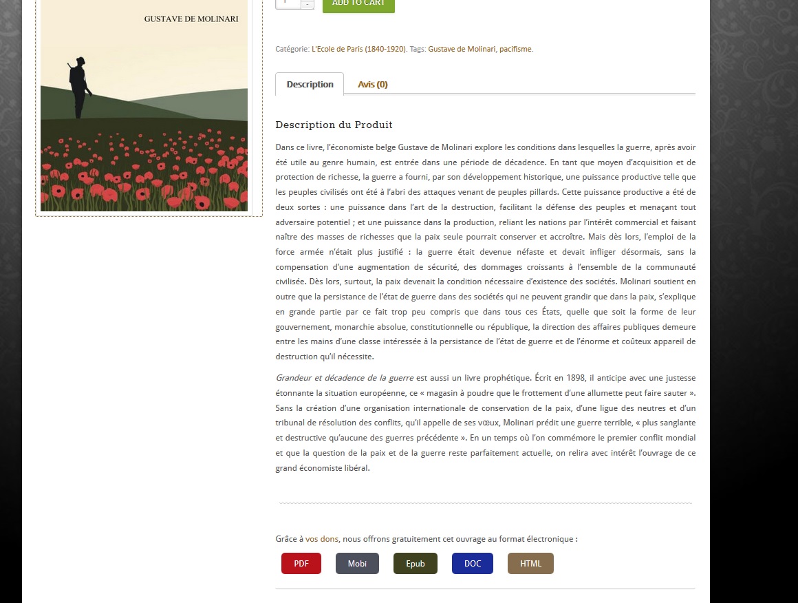 Version ebook à trouver sur la page du livre Grandeur et décadence de la guerre de G. de Molinari.